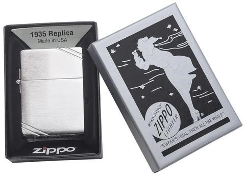 Зажигалка ZIPPO 1935 Replica Brushed Chrome 1935 от официального дилера Zippo в Мурманске. Вы можете дополнительно заказать гравировку, которая подчеркнет Вашу оригинальность и придаст памятность статусному подарку.